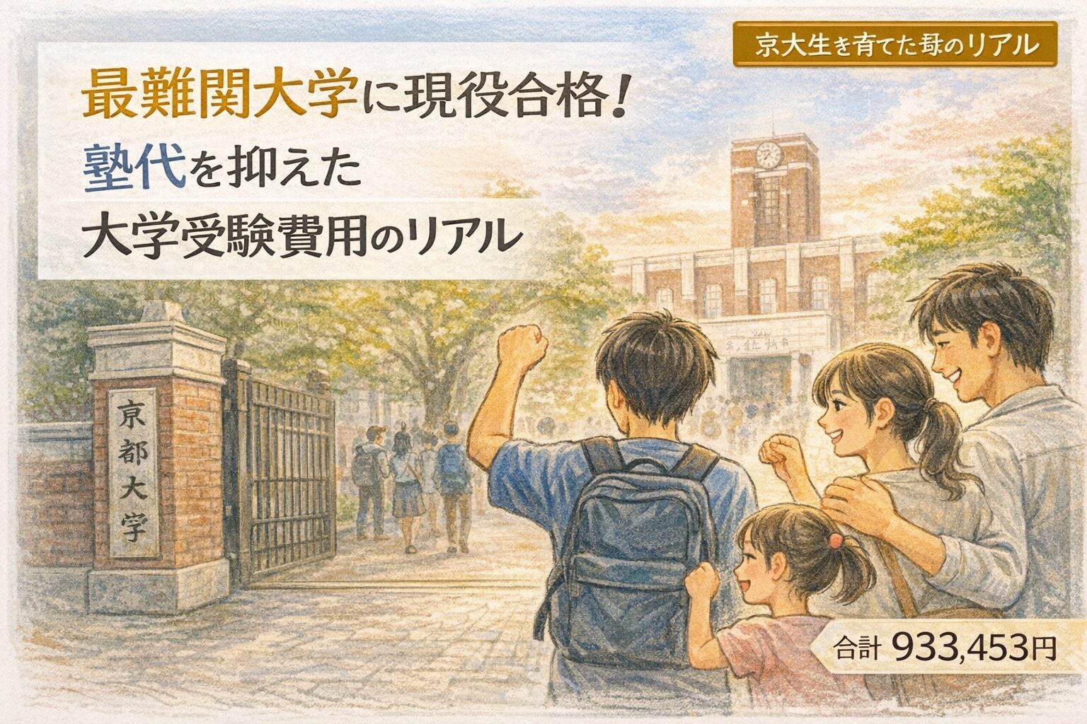 長男が京都大学に現役合格するまでにかかった費用は合計933,453円。